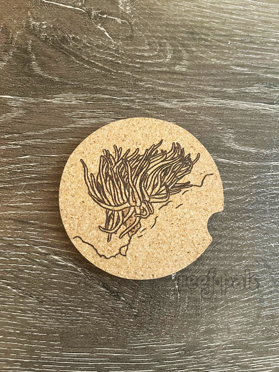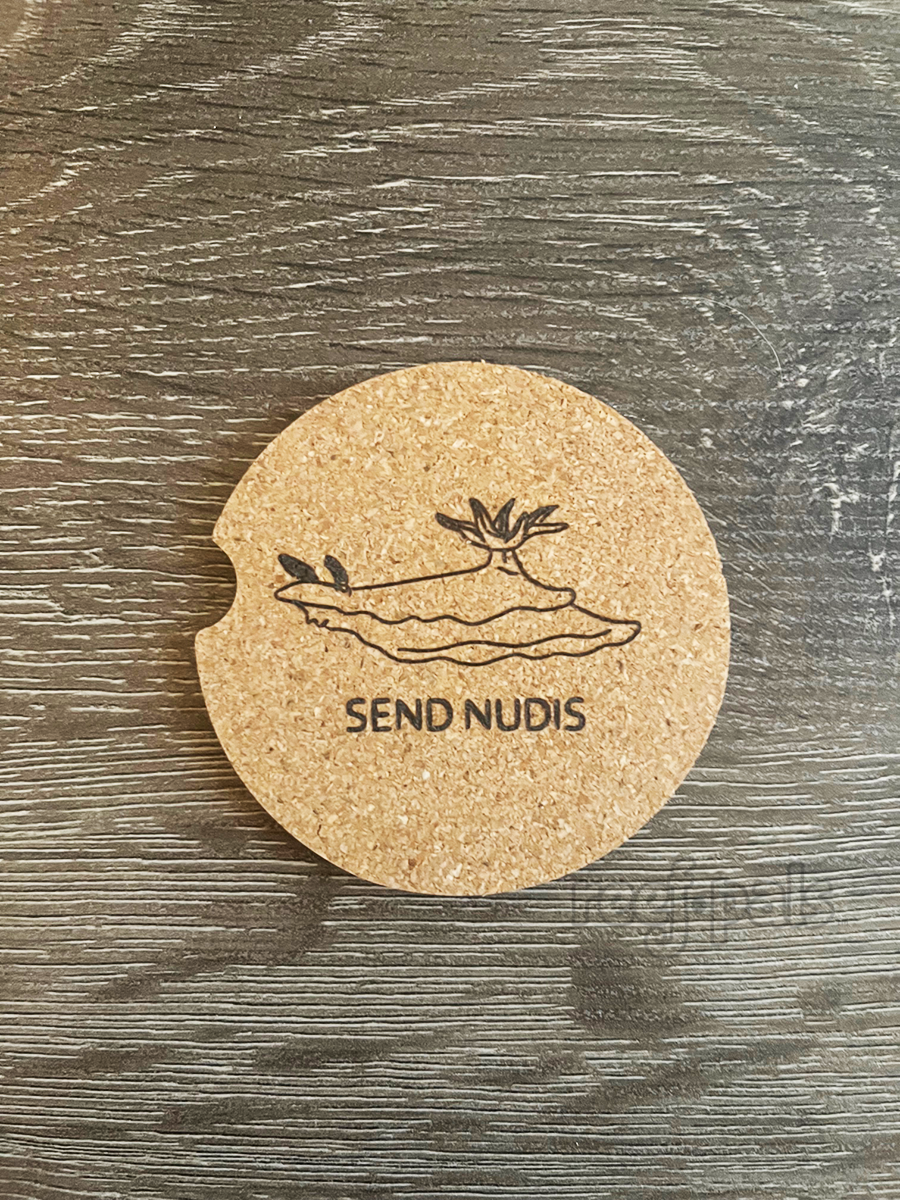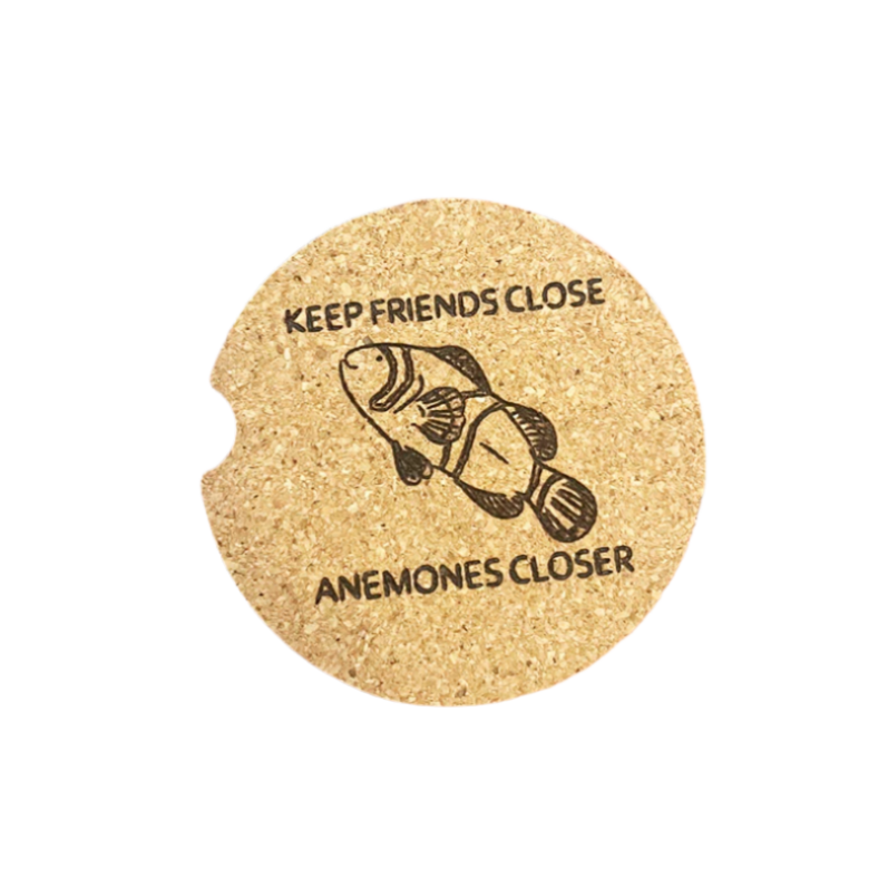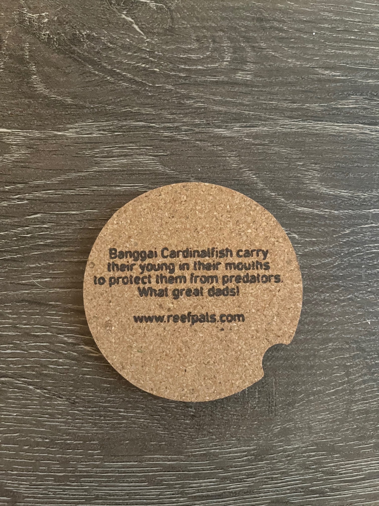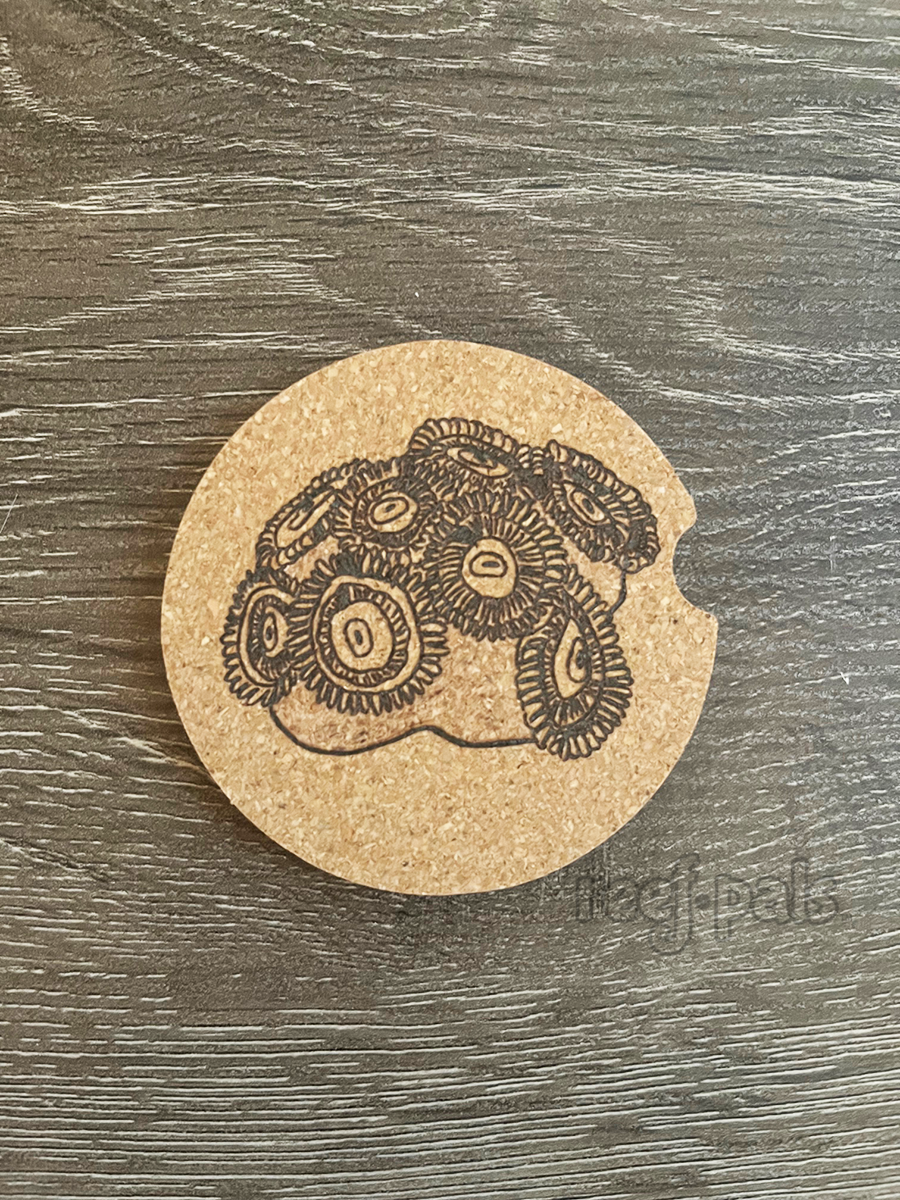 Biodegradable cork coasters sized for your car's cup holders! Convenient tab for easy removal. Add ocean style and catch those condensation drops! 🚗
